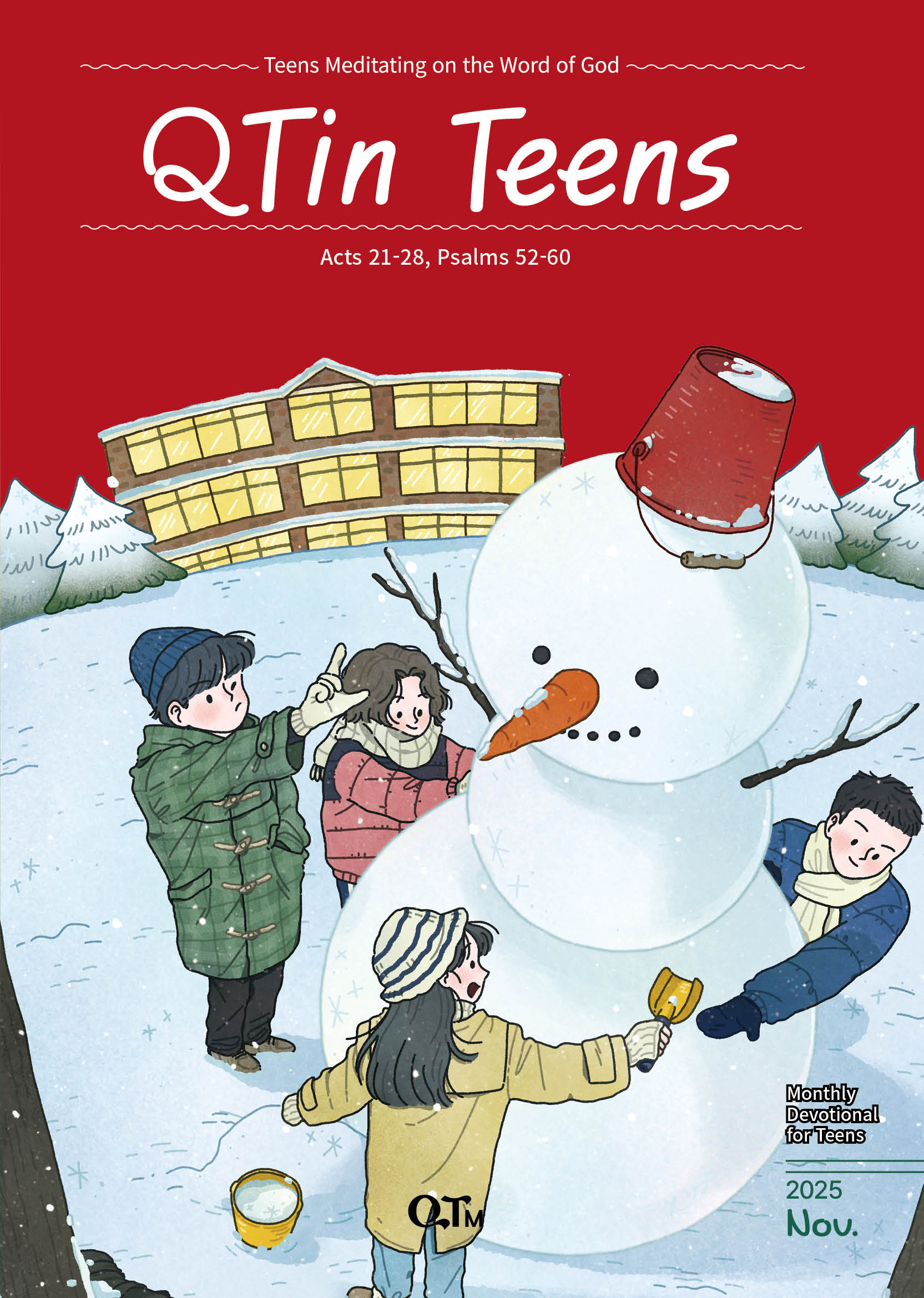 To help all generations to meditate on the Word of God every day, QTM has published 《QTin Teens》 (Korean) in 2013, 《QTin Kids》 (Korean) in 2014, and 《QTin Sprouts》 (Korean) in 2016 with the vivid testimonies from the readers, both kids and parents. Moreover, the increasing number of readers and subscribers from outside Korea, mainly from the English-speaking world, the English 《QTin》 has been published in the form of an eBook since September 2019, and started as a paper book in January 2020.