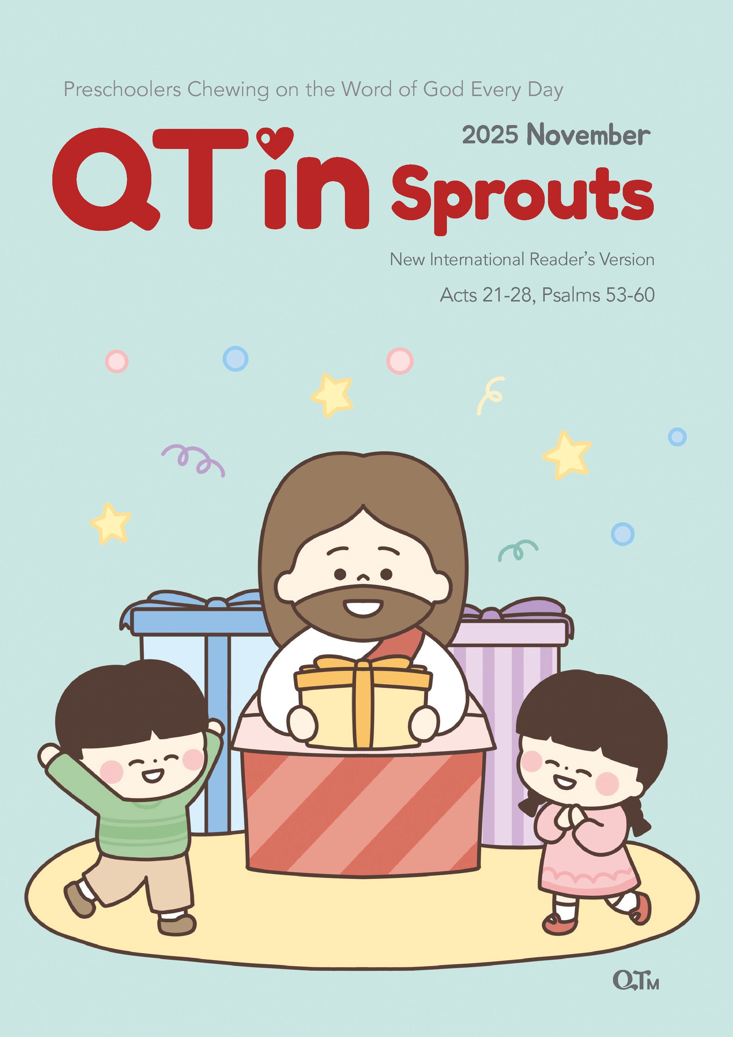 To help all generations to meditate on the Word of God every day, QTM has published 《QTin Teens》 (Korean) in 2013, 《QTin Kids》 (Korean) in 2014, and 《QTin Sprouts》 (Korean) in 2016 with the vivid testimonies from the readers, both kids and parents. Moreover, the increasing number of readers and subscribers from outside Korea, mainly from the English-speaking world, the English 《QTin》 has been published in the form of an eBook since September 2019, and started as a paper book in January 2020.