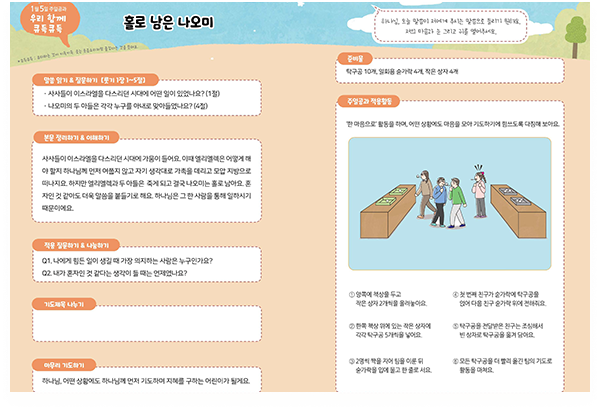 따뜻한 일러스트가 실려 있는 매일의 큐티 본문과 주일마다 실리는 부모님의 간증을 통해 부모님과 함께 영유아들이말씀을 재미있게 묵상하도록 돕습니다.